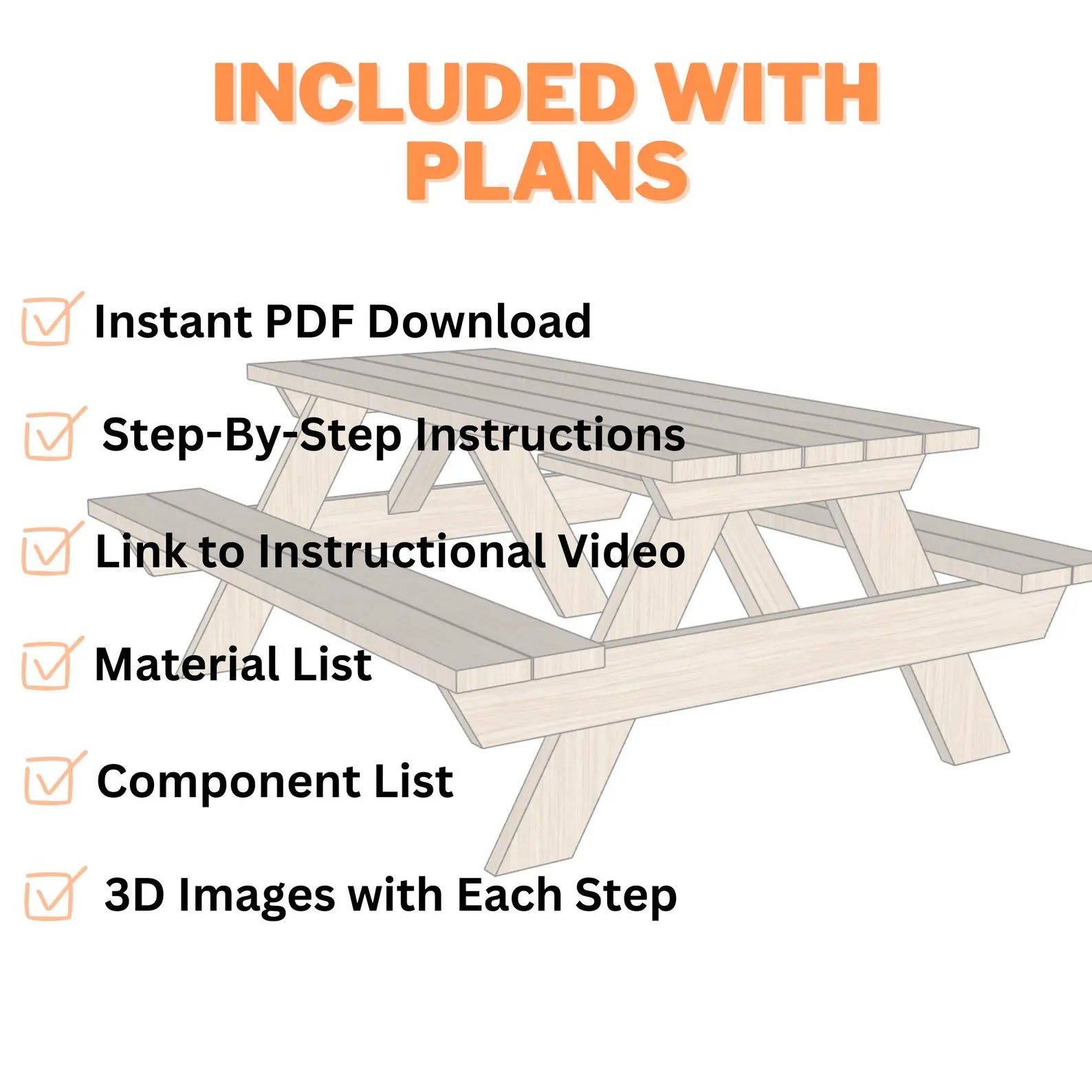 Picnic Table Plans - Step-by-Step Instructions - DIY Woodworking Plans (PDF)
